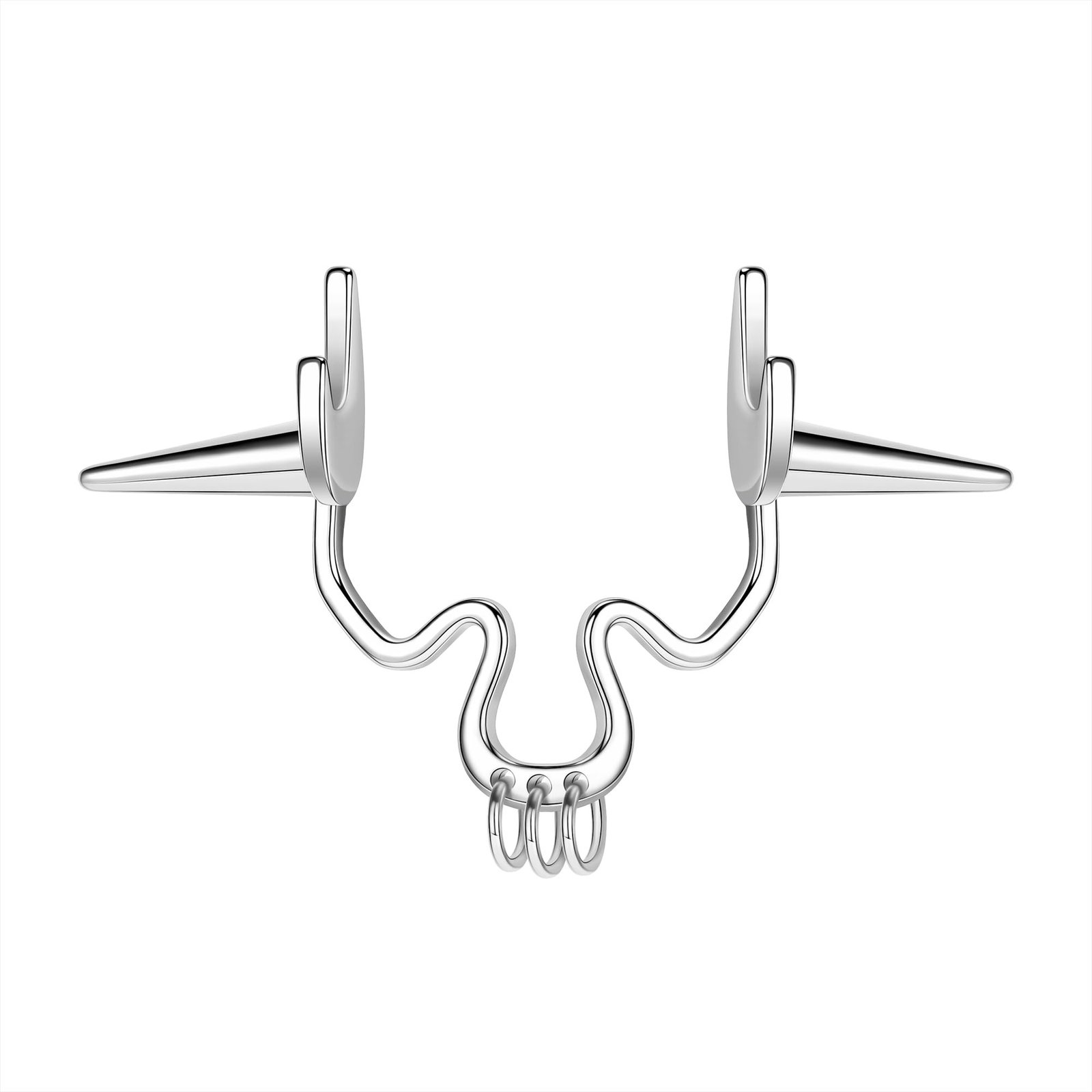 - ❀Fake Septum Clicker Size——Non piercing jewelry Inner Diameter: 10mm/11mm. Total Length: 18mm, 19mm, 21mm. Color: Silver. Pattern Design: bat, triple spikes, fangs. List by referring to the pictures. Different styles options to meet your various needs.