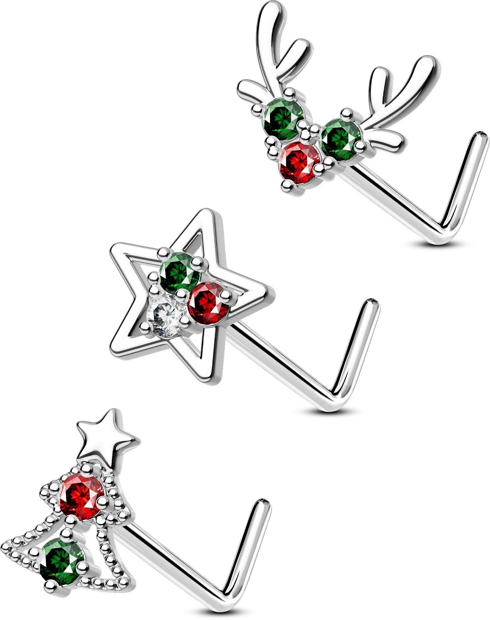 - Christmas Sparkling Design — 3PCS nose stud rocks a cute christmas tree deer star design, blending fashion with a hint of sass. The christmas design adds visual appeal and amps up the overall charm.