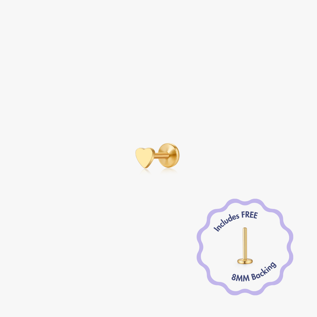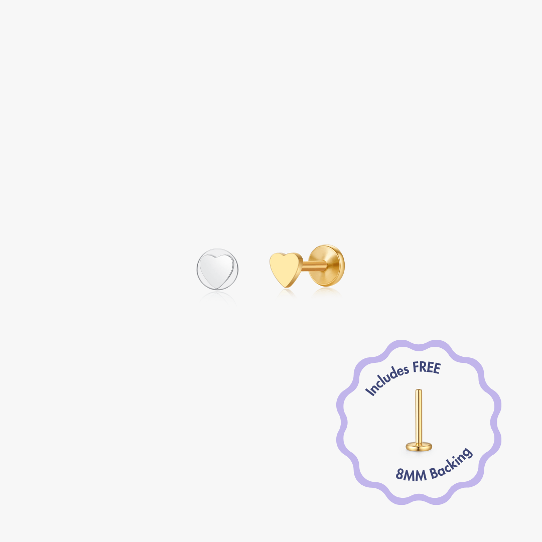Mini Heart Titanium Flat Back Stud (Single)